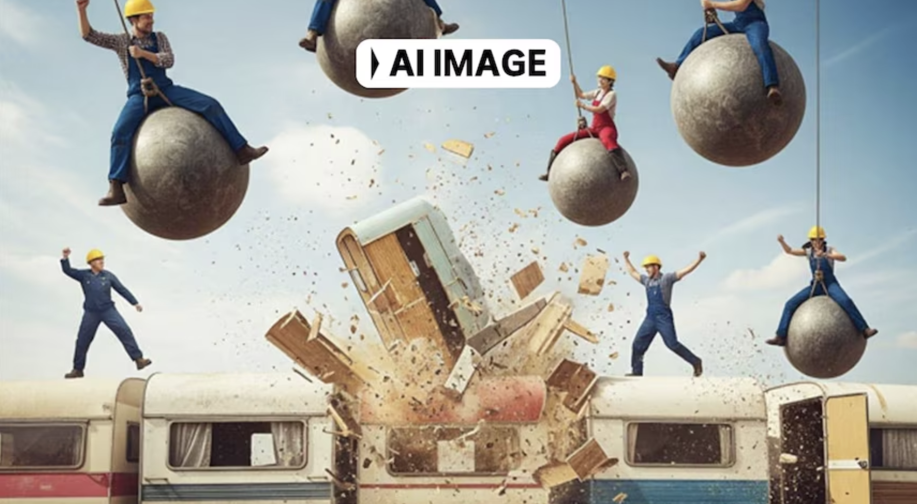 “1. 播放麦莉赛勒斯的歌曲《Wrecking Bally》——工作人员戴着王冠在破坏球上飞来飞去,撞翻了大篷车?太早了?太敏感了?也许明年?”