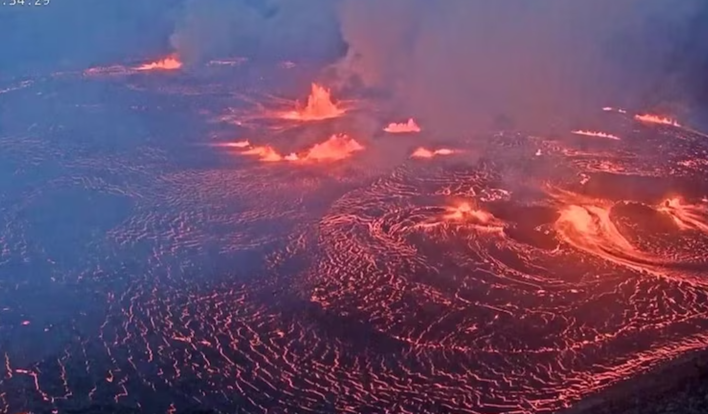 美国地质调查局的夏威夷火山观测站在一份声明中说,清晨在基拉韦厄火山顶峰拍摄的网络摄像头图像中检测到辉光,表明火山顶火山口的 Halemaumau 火山口内正在喷发。