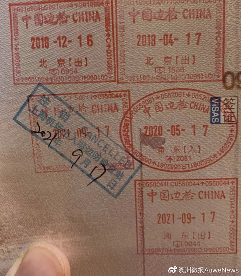 时间就是在今年的9月17日,在上海浦东机场出境的盖章旁边,被扣上了一个注销的印章。