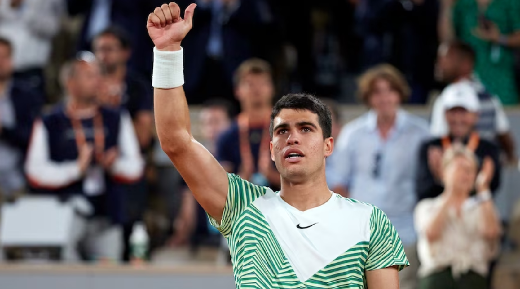 世界排名第一的卡洛斯·阿尔卡拉斯在第三盘的摇摆中幸存下来,战胜了五号种子斯特凡诺斯·西西帕斯,赢得了法网四强席位。