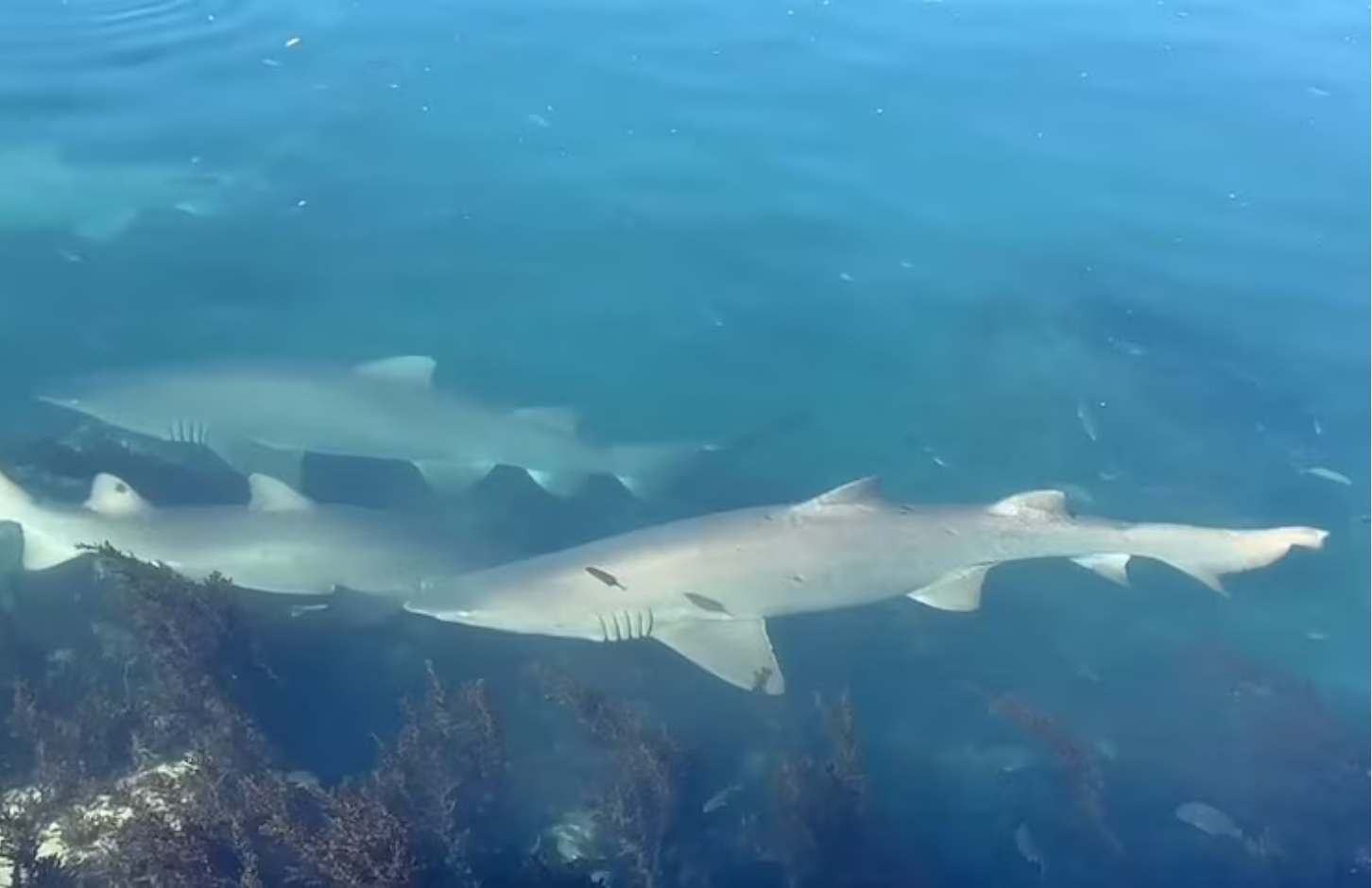 当丹尼尔·麦卡锡本周在沿海防波堤旁发现八只极度濒危的灰护士鲨时,她很快就拍摄了一段视频。