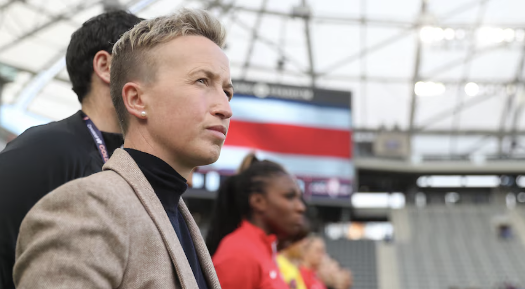 她曾率领加拿大队夺得2021年奥运会金牌,但在去年世界杯小组赛中被淘汰。她执教球队的战绩为28胜9负10平。