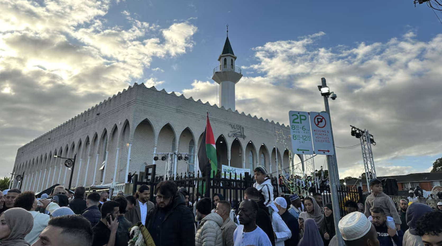 数千名穆斯林聚集在悉尼的拉肯巴清真寺进行开斋节早晨祈祷,但看不到任何政客。