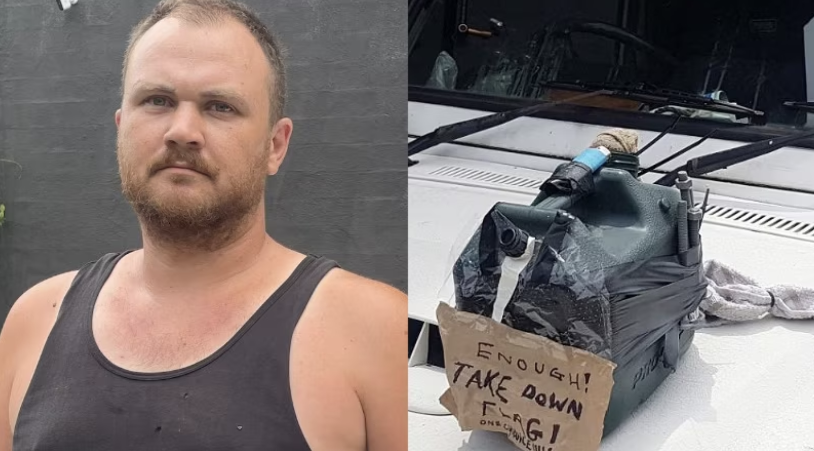 在报警之前,他在发现这一令人震惊的情况后走过去安慰他的伴侣,并询问他是否应该移除旗帜和标志。